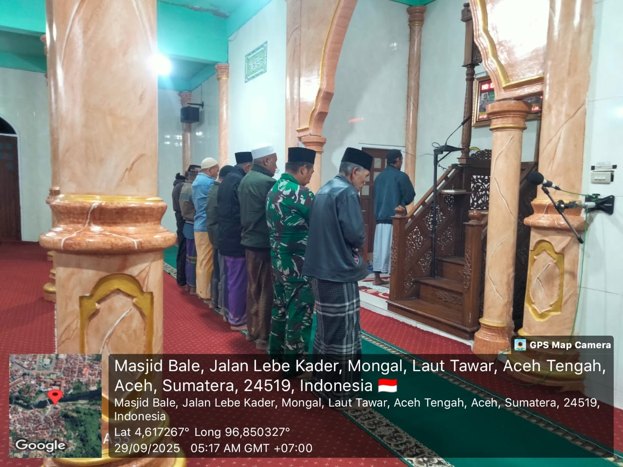 SeulangaNews. ComAceh Tengah – Anggota koramil 02/ Bebesen melaksanakan Kegiatan Sholat Subuh berjamaah, di Masjid Al Mukmin desa Mongal kec Bebesen. Senin, 29 September 2025