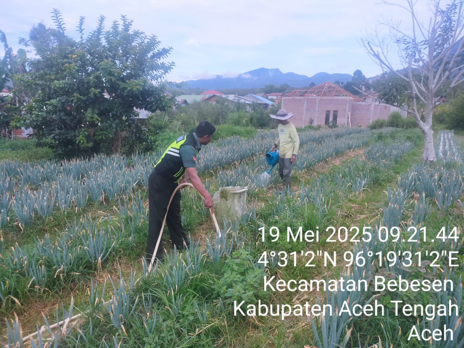 Aceh Tengah – Dalam melakukan kegiatan pendampingan Hanpangan (ketahanan pangan) terhadap petani di wilayah binaannya Koptu Radian selaku Babinsa Desa Koramil 02/Bebesen membantu Petani merawat kebun Sayuran Bawang Daun di lahan Warga Binaan Kec.Bebesen Kab.Aceh Tengah. Selasa, 20 Mei 2025