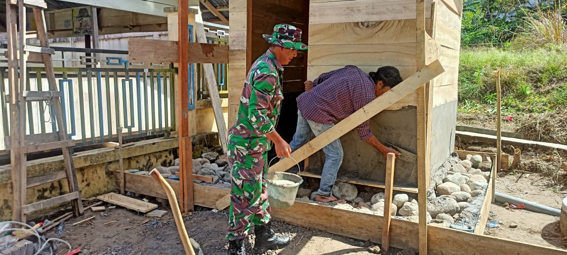 Kegiatan ini dilakukan sebagai upaya mendukung peningkatan sanitasi dan kesehatan lingkungan di desa binaannya, serda wahyudin bersama warga bahu membahu menyusun menyiapkan MCK yang nantinya akan digunakan secara bersama oleh warga sekitar.