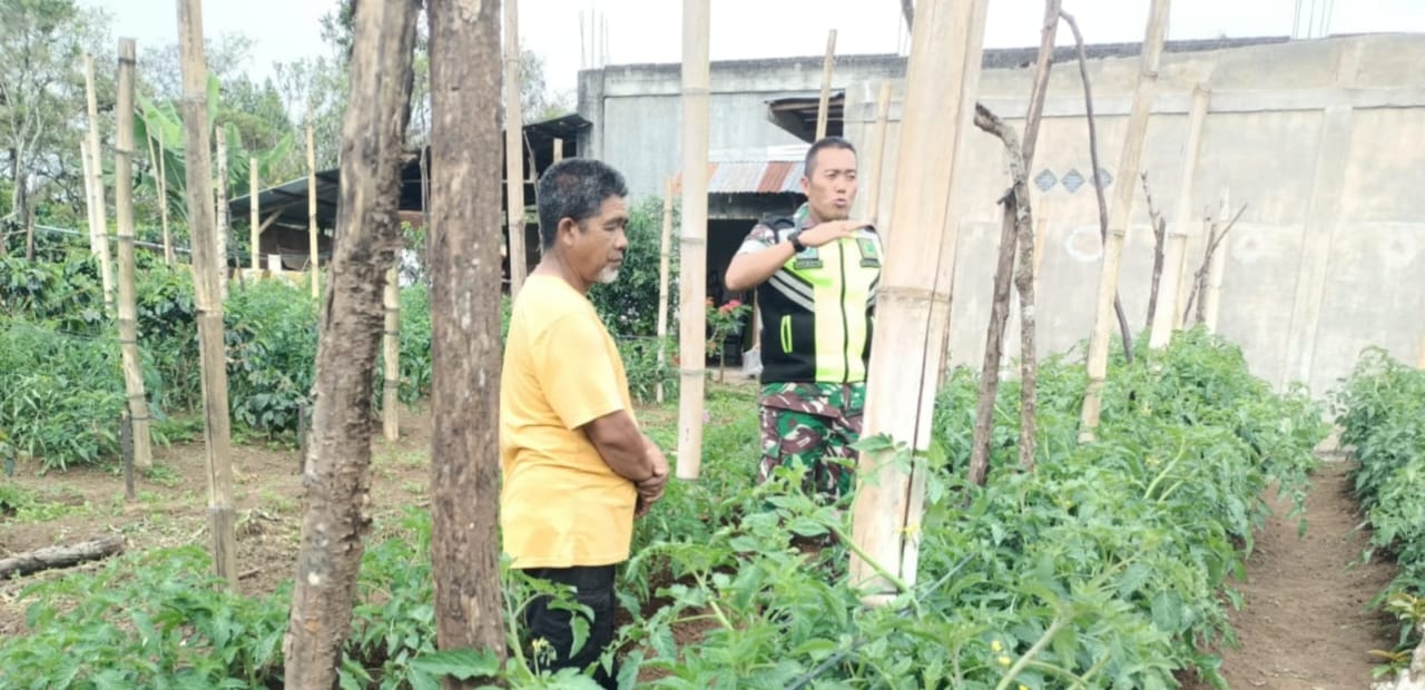 Kegiatan tersebut merupakan bentuk kepedulian Babinsa terhadap peningkatan hasil pertanian masyarakat, sekaligus mempererat kemanunggalan TNI dengan rakyat. Dalam kesempatan itu, Babinsa turut membantu membersihkan gulma dan memberikan arahan tentang perawatan tanaman tomat agar tumbuh dengan baik dan menghasilkan panen yang maksimal.