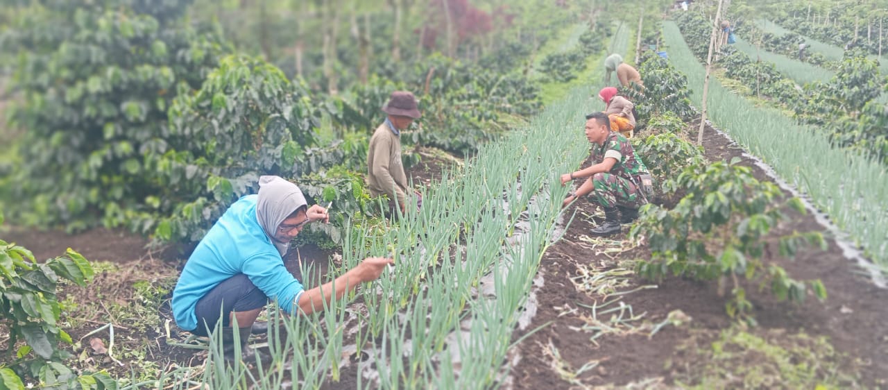 SeulangaNews.comAceh Tengah – Babinsa Koramil 02/Bebesen Kodim 0106/Ateng Serda Alamsyah, Melaksanakan Kegiatan Sekalipun Membantu Petani Yang Sedang Merawat Tanaman Bawang Merah di Desa Gelelah Kec.Bebesen Kab.Aceh Tengah. Kamis, 21 Agustus 2025